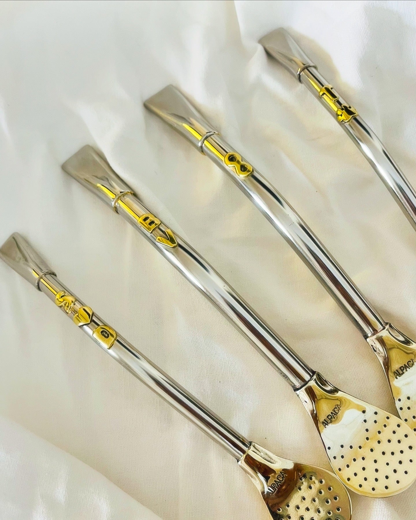 Bombilla de alpaca con apliques dorados en bronce.