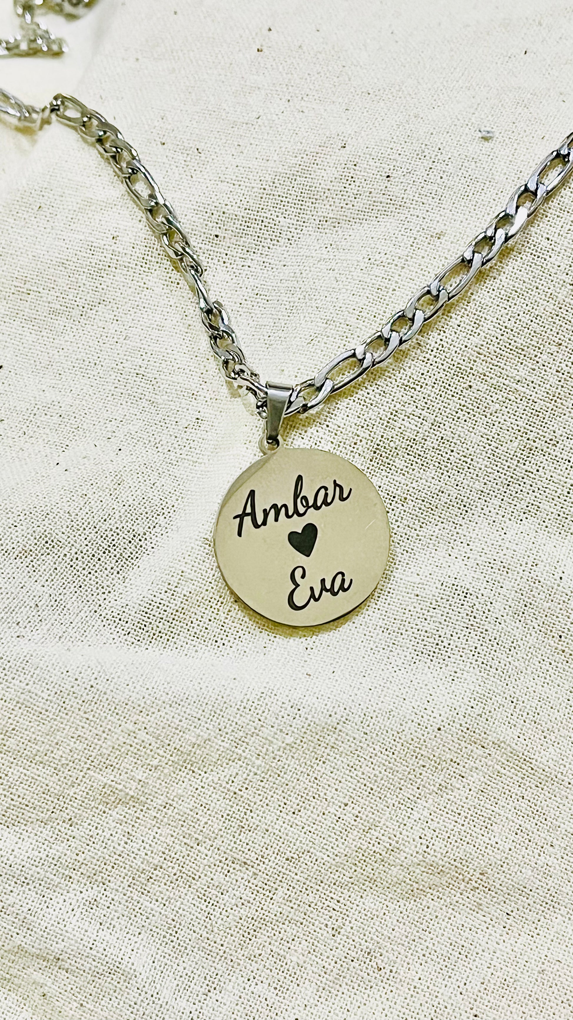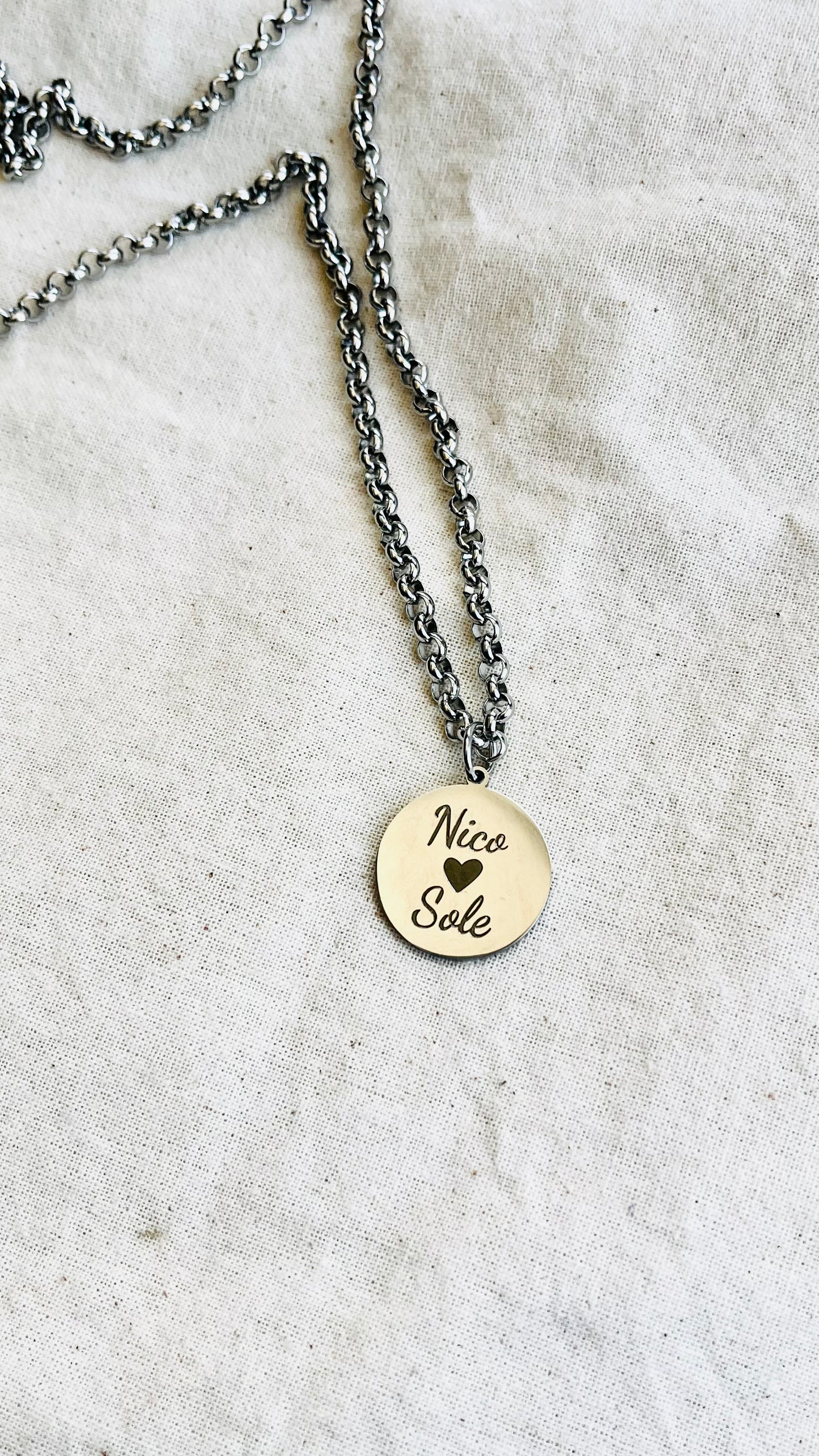 Collar en acero quirúrgico con medalla personalizada.