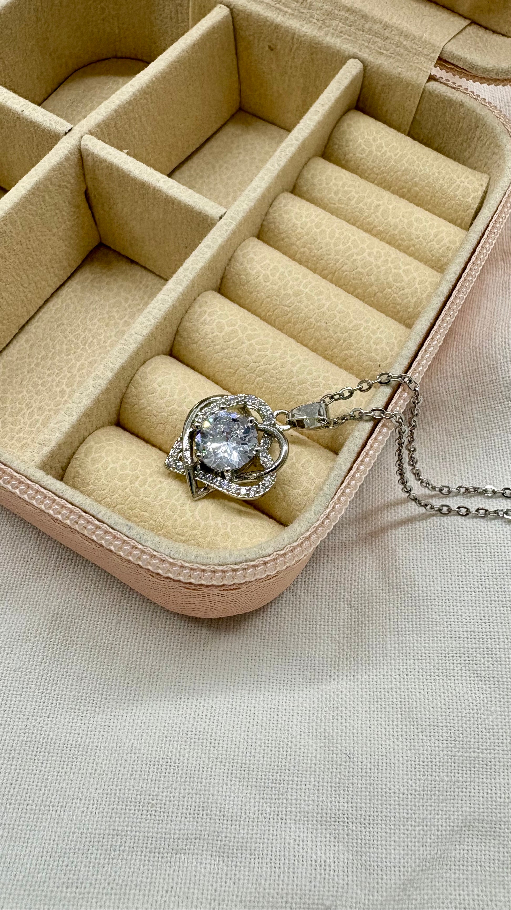 Collar en acero quirúrgico de excelente calidad + joyero de viaje color rosa.